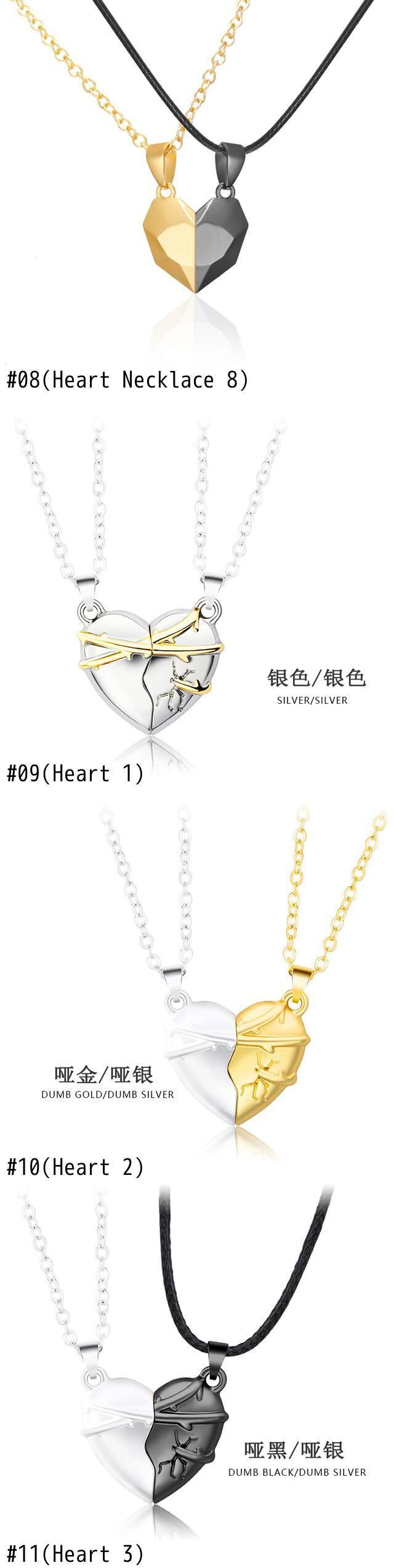送料無料 2PCSマグネティックハートペアペンダントラバーネックレス女性カップルバレンタインデージュエリーチェーンチョーカーハンドムーンウィングギフト レッド レース アクセサリー AE7778886263521829