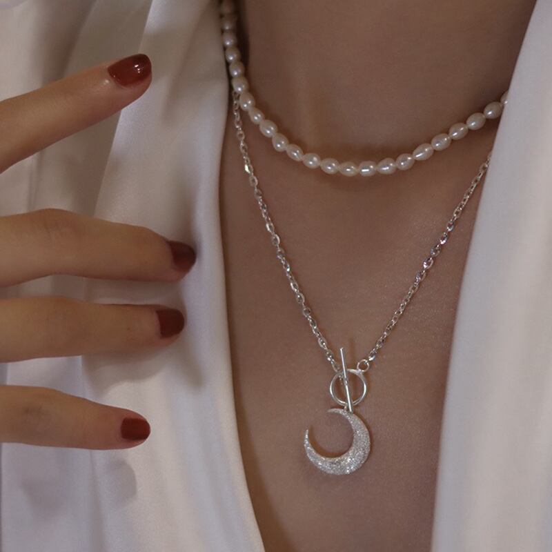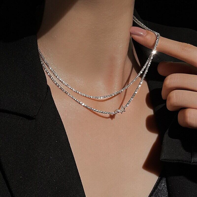 送料無料 シンプルシルバーカラーチェーンチョーカーネックレスレディースムーンバタフライペンダントレディウェディングパーティージュエリーネックアクセサリー レース 銀 アクセサリー AE777883218976495