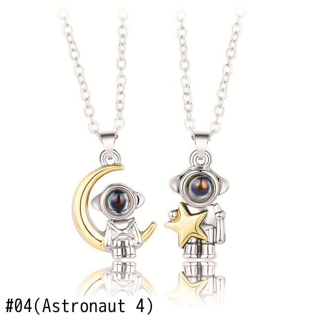 送料無料 宇宙飛行士カップルネックレス女性ハートスタームーンディア宇宙飛行士ペンダントチェーンチョーカー恋人ジュエリーパーティーウェディングギフト レース アクセサリー AE777888657913192