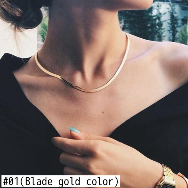 送料無料 シンプルなスネークブレード鎖骨チェーンネックレス女性ゴールドカラーストリートスタイル自由奔放に生きるジュエリーチョーカーネック男性ギフト レース アクセサリー AE7778888258728410