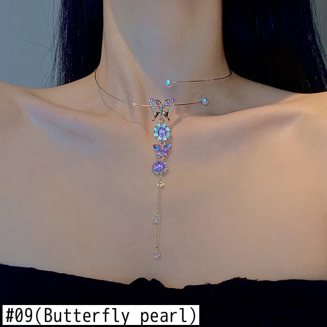 送料無料 ラグジュアリー気質レディバタフライハートネックレス女性ジルコン鎖骨チェーン電話幾何学的な恋人ジュエリーウェディングギフト レース アクセサリー AE7778822600537684