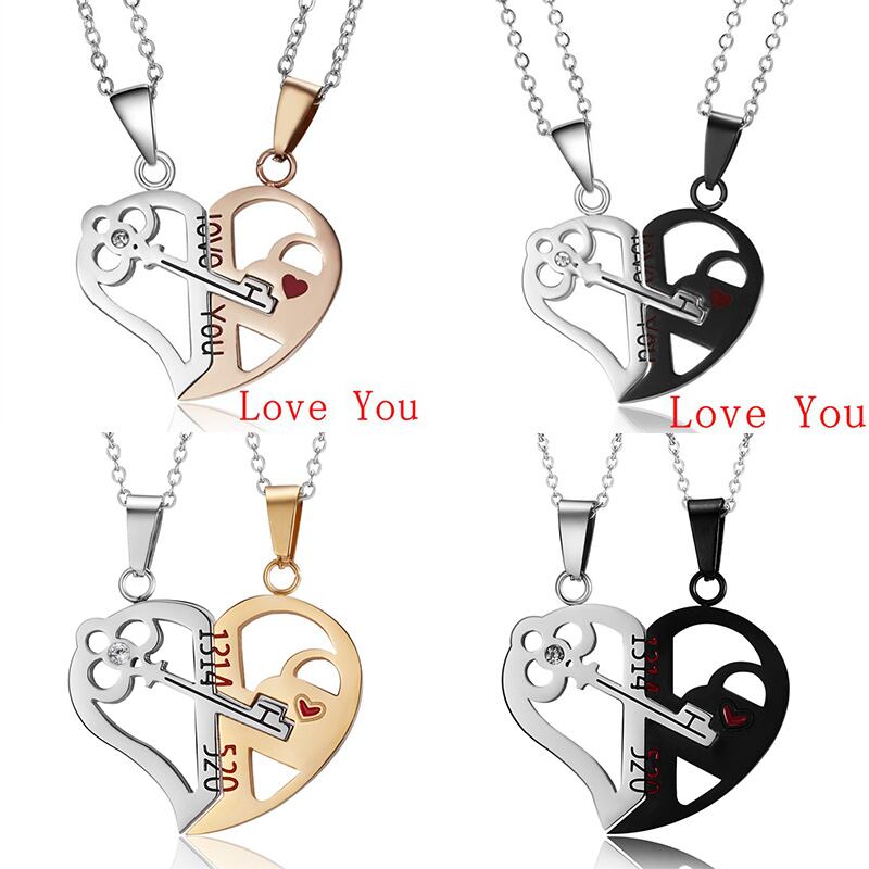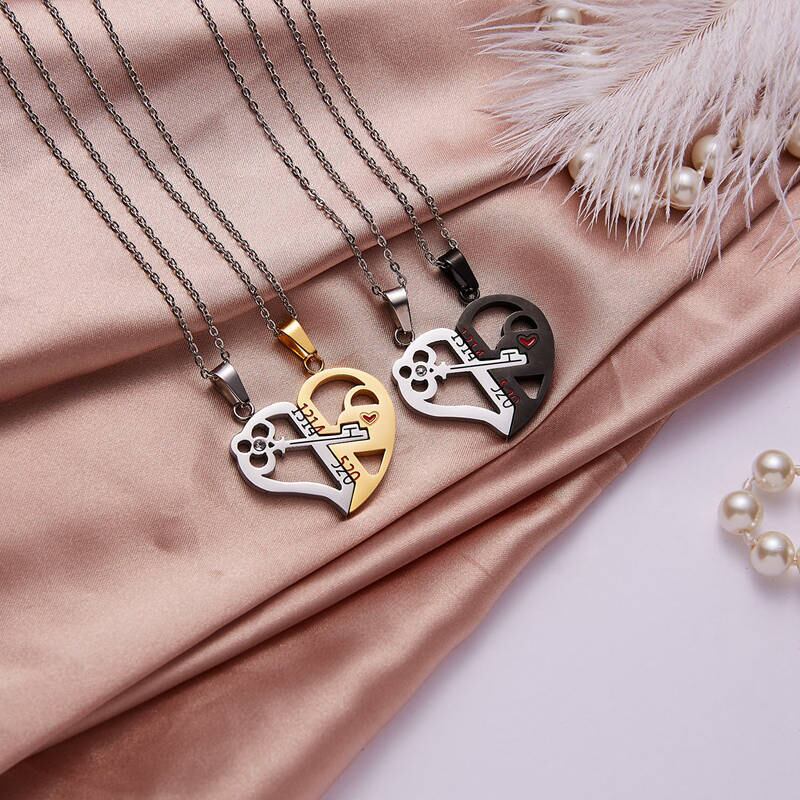 送料無料 トレンディなステンレス鋼失恋カップルネックレス女性シルバーカラーチェーンキーペンダントバレンタインデー恋人ジュエリーチャーム レース 銀 アクセサリー AE7778889672983338