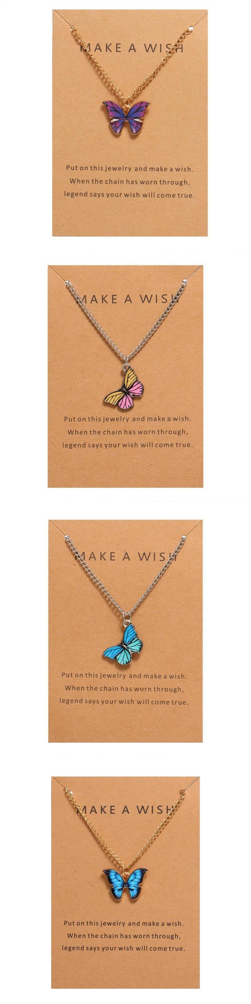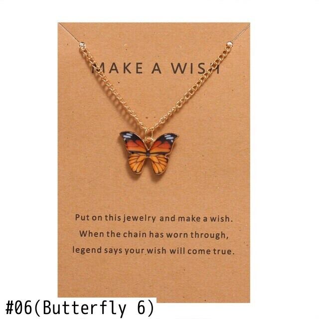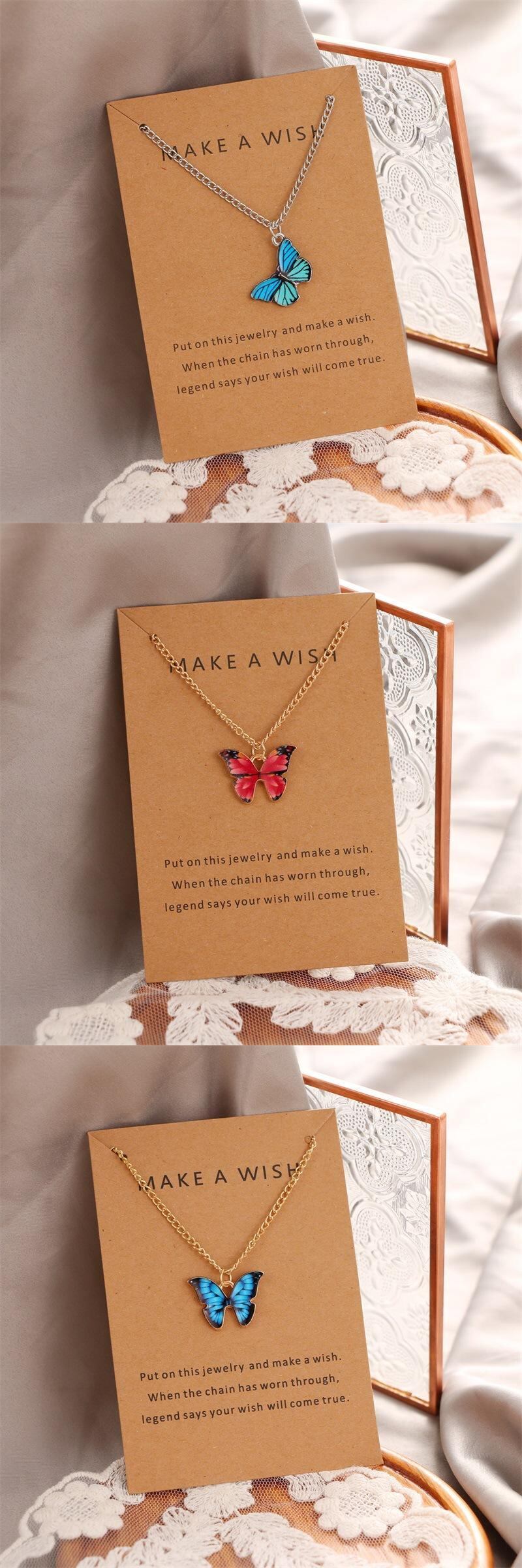送料無料 マルチカラーバタフライチョーカーネックレス女性メタルペンダントチェーンネックアクセサリーガールズジュエリーウィッシュカード2021 レース アクセサリー AE7778817221789780