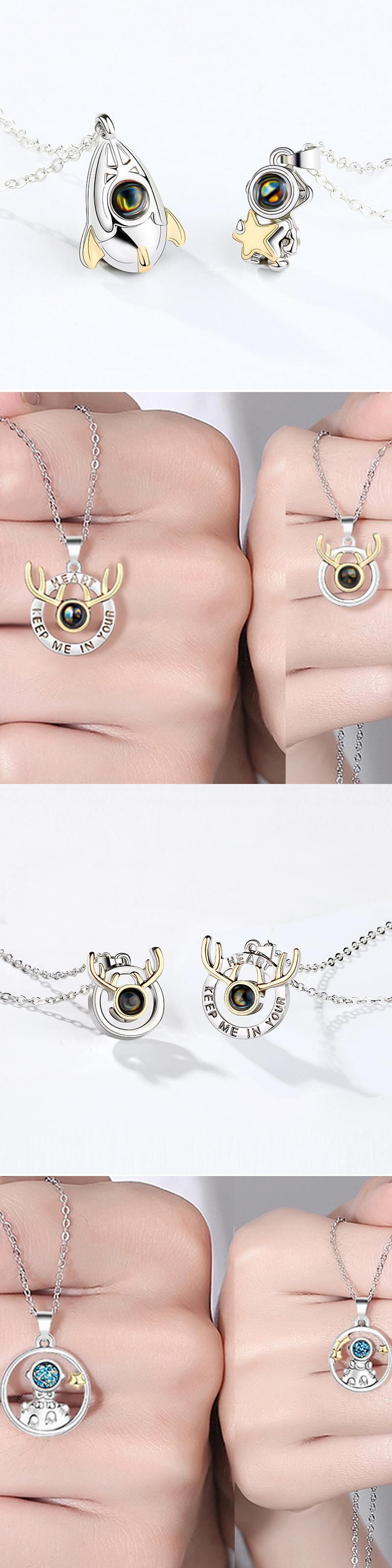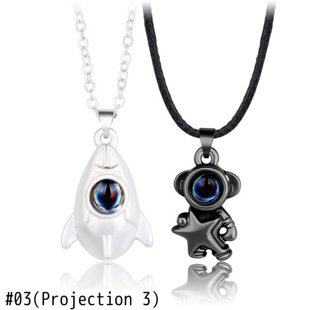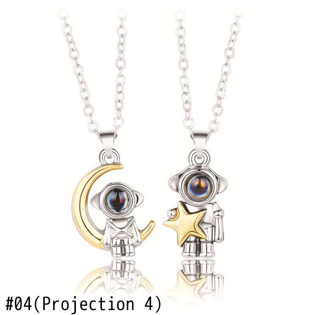 送料無料 2PCS/セット100言語ILoveYouプロジェクションネックレスカップル女性宇宙飛行士スターペンダントチョーカーチェーンバレンタインデーギフト レース アクセサリー AE7778812891232088