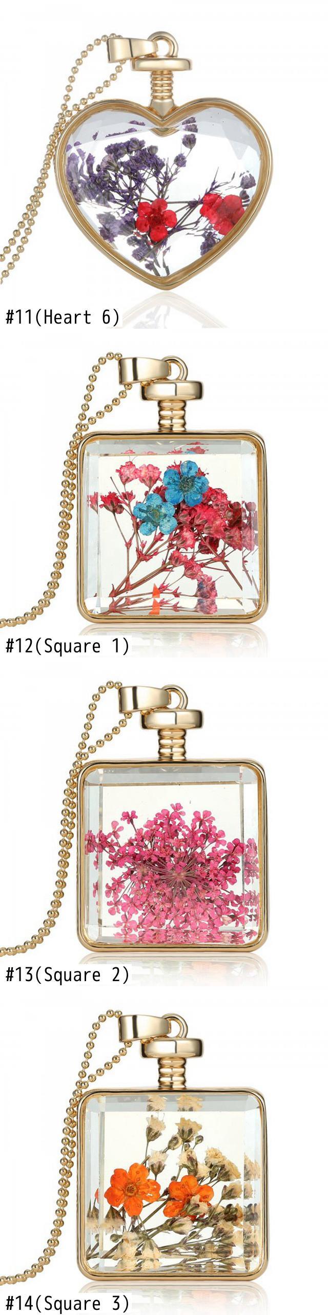 送料無料 トレンディな透明Glハート幾何学的なドライフラワーペンダントネックレスチョーカー女性ジュエリーデイジーリーフブロッサムチェーンレディギフト レース フラワーデザイン アクセサリー AE7778870038877300