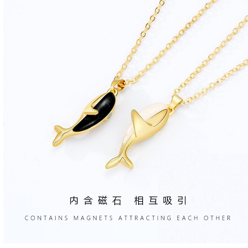 送料無料 2PCSホールドハンズカップルネックレス恋人女性男性ペンダントチョーカークラビクルチェーンクジラカラーバレンタインデージュエリーギフト レース アクセサリー AE7778813135454462