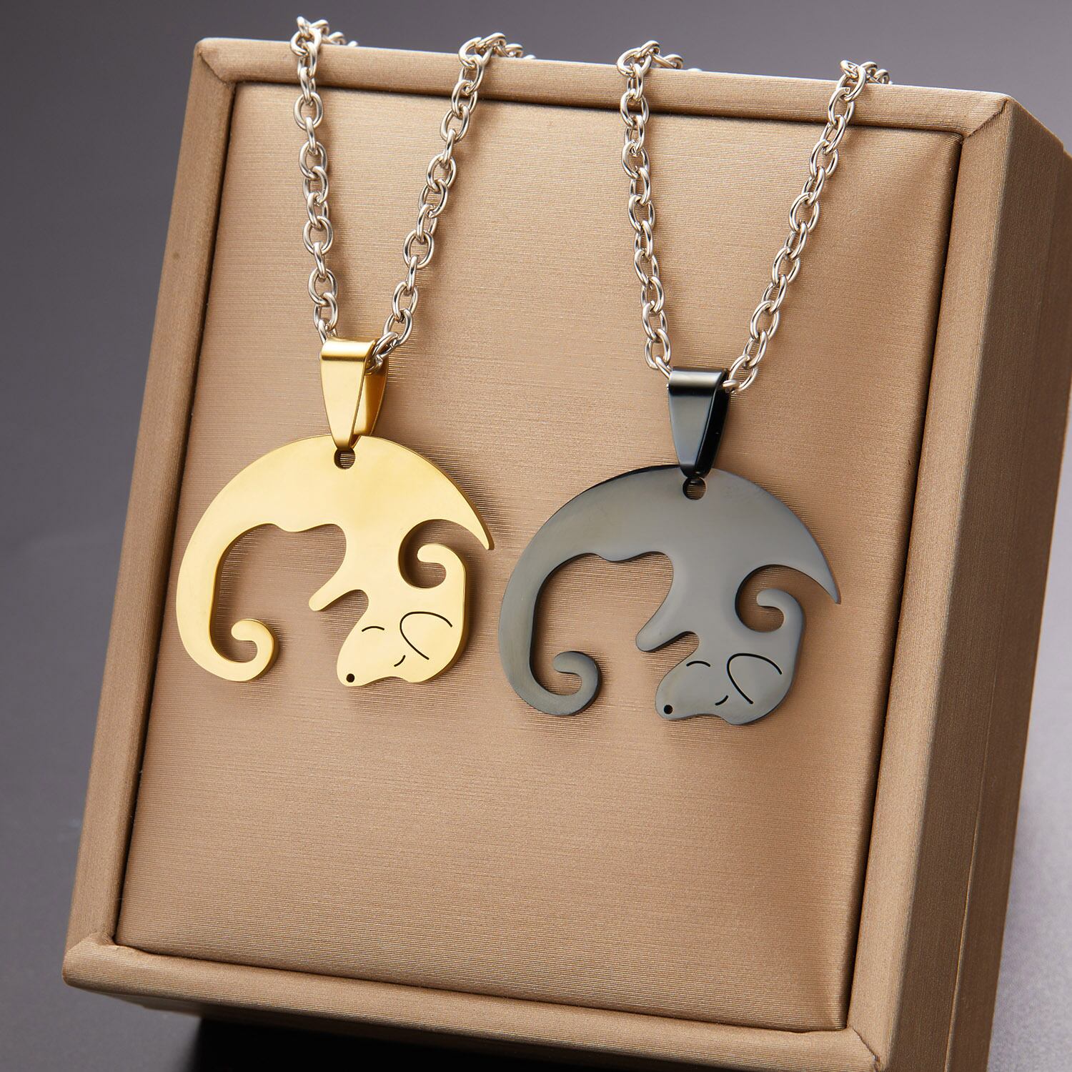 送料無料 陰陽太極拳犬のスプライシングペアカップルネックレスセット女性ペンダントロープチェーン動物ペット恋人ジュエリーカラー2021 レッド レース アクセサリー AE777889760728384