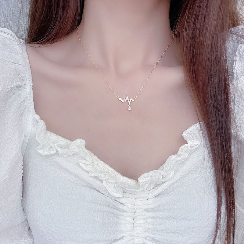 送料無料 ハート型インレイジルコンレディースネックレスゴールドカラーチェーンハートビートチョーカージュエリーウェディングパーティーギフト レース アクセサリー AE7778810776419643