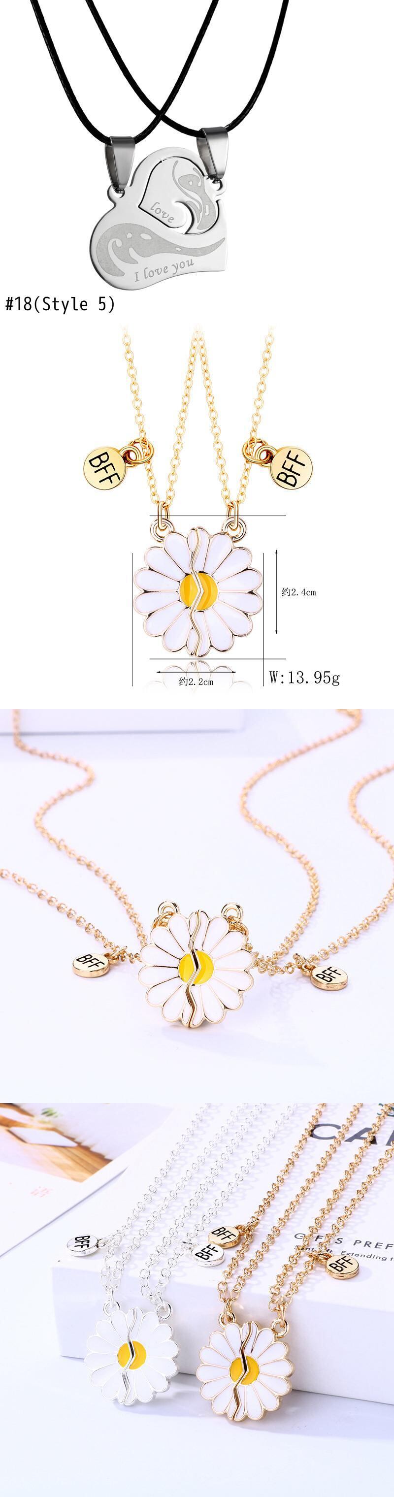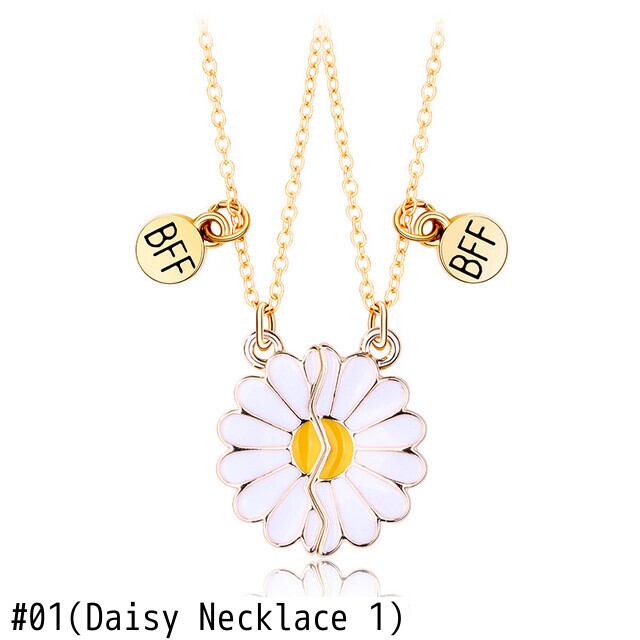 送料無料 デイジーフラワースプライスネックレスセット女性ペンダントチョーカージュエリー陰陽蝶ハートチェーンガール親友カップルギフト レース フラワーデザイン アクセサリー AE7778835675403692