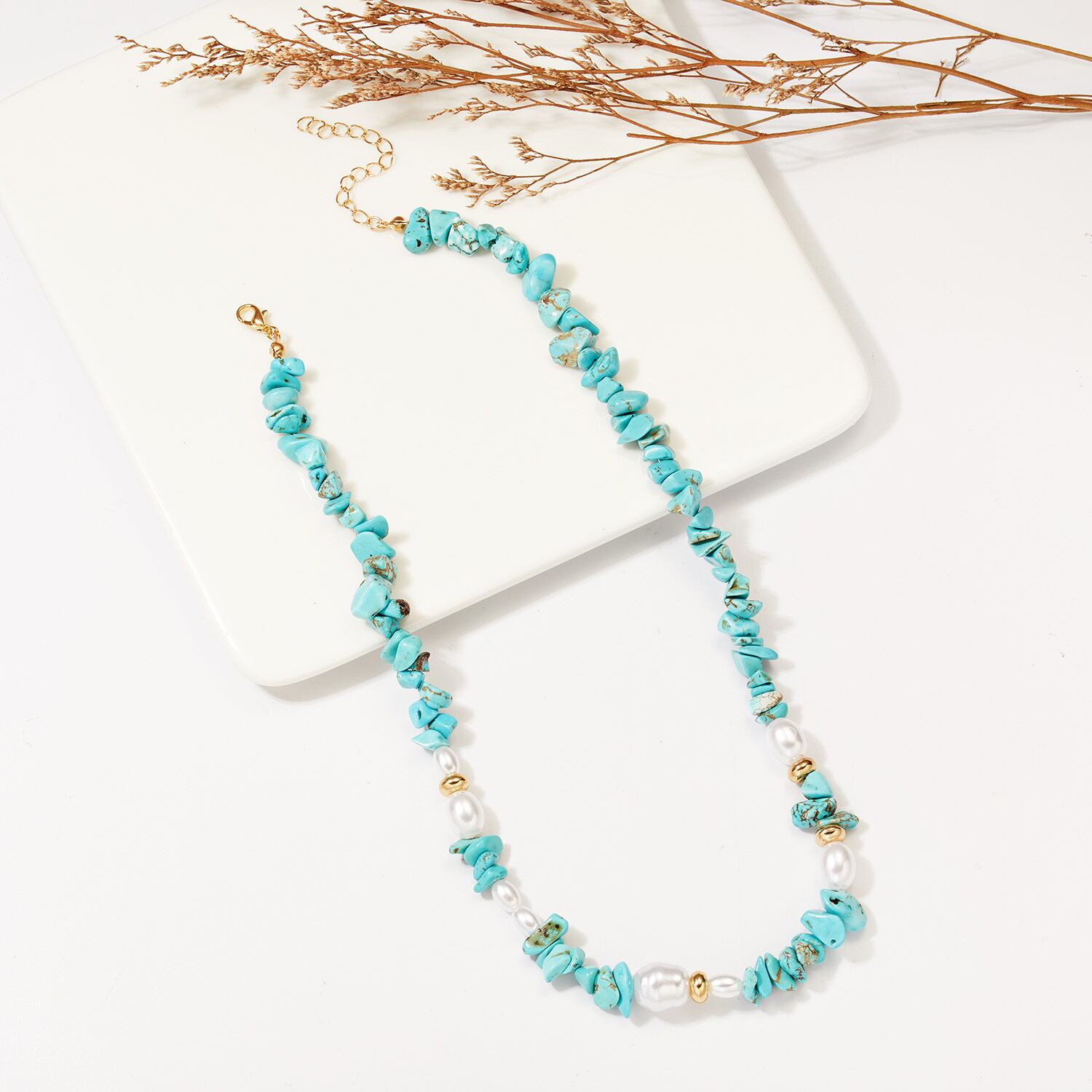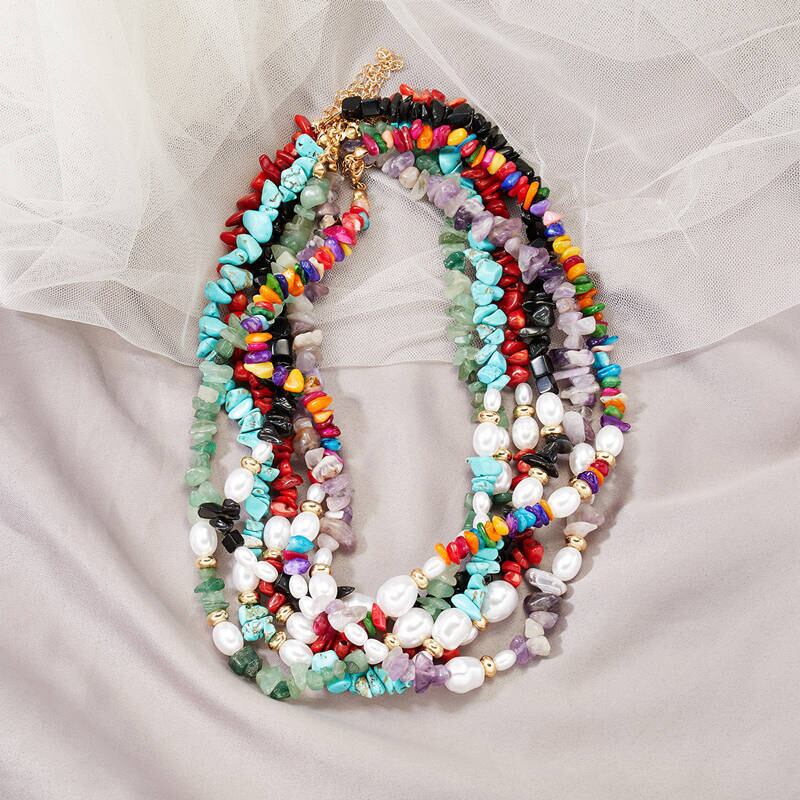 送料無料 ボヘミアンレインボー不規則な天然石チップネックレス女性チョーカーパールビーズネックチェーンサマービーチジュエリーギフト レース 夏物 ナチュラル 真珠 アクセサリー AE7778818640943349