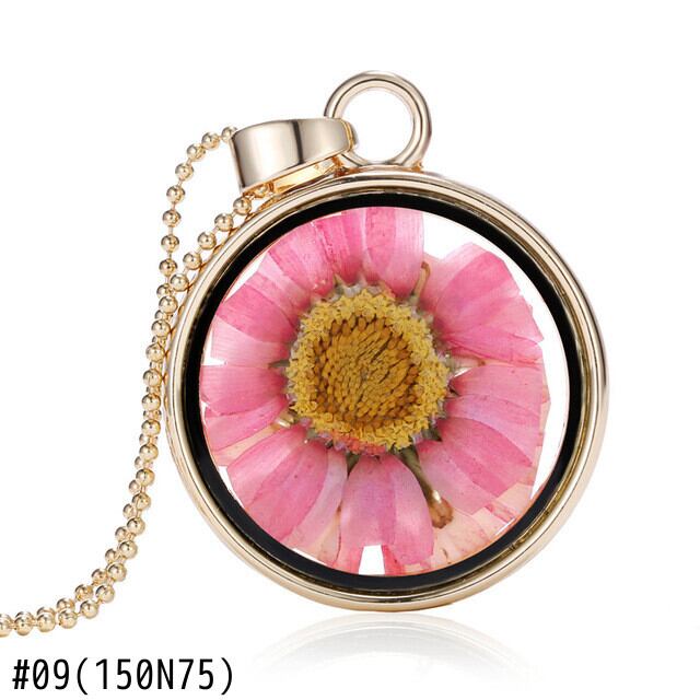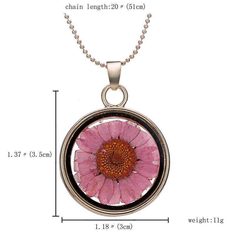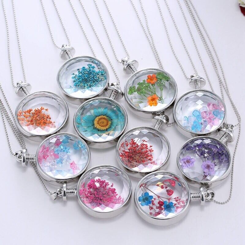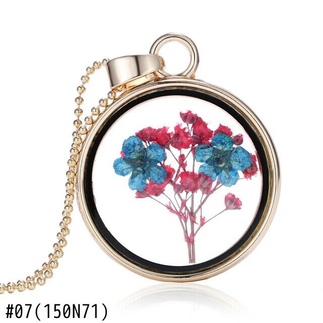 送料無料 カスミソウ天然ドライフラワーペンダントネックレス女性ラウンドカラフルな植物手作りジュエリーガールギフト レース ナチュラル フラワーデザイン アクセサリー AE777881087951882
