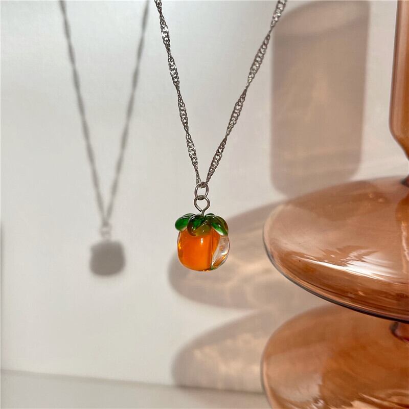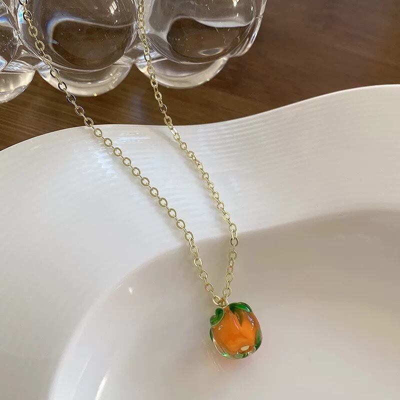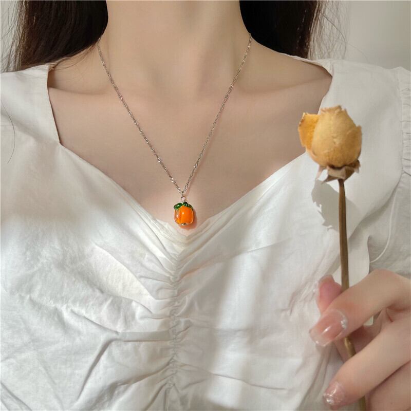 送料無料 甘い柿フルーツペンダントネックレス女性の女の子の声明結婚式のパーティージュエリークラビクルチェーンチョーカーギフトカラー レース 大人ガーリー スウィート キュート カジュアル アクセサリー AE7778838248207835