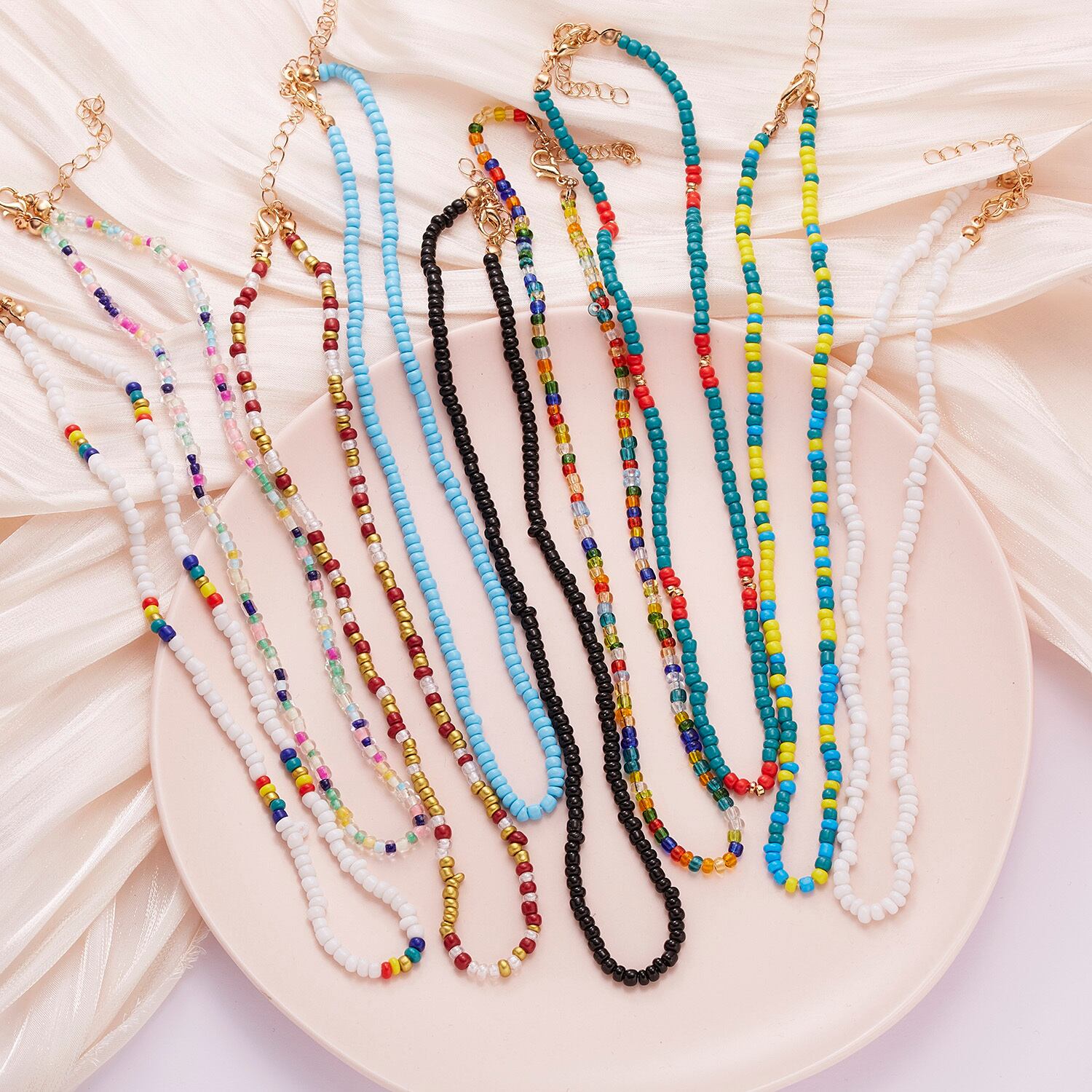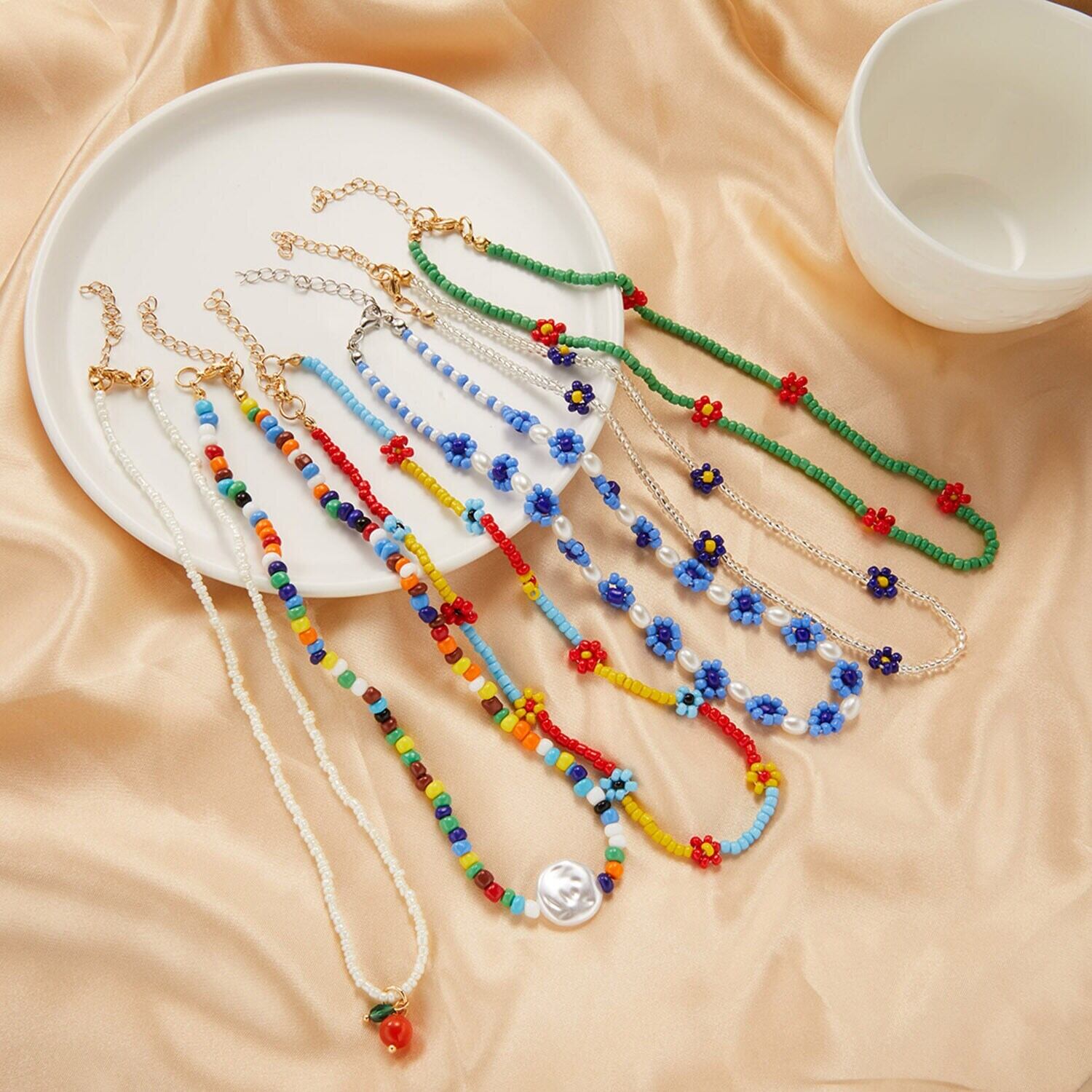 送料無料 自由奔放に生きる手作りライスビーズフラワーレディースネックレスストリングチョーカージュエリーサマーネックアクセサリー鎖骨チェーンパーティーギフト レース 夏物 フラワーデザイン アクセサリー AE7778875047855982