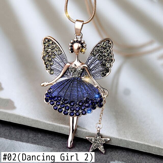 送料無料 トレンディなダンスガールエンジェルセーターチェーンネックレス女性ラインストーンクリスタルスターロングチェーンジュエリーアクセサリーギフト レース アクセサリー AE7778870000343445