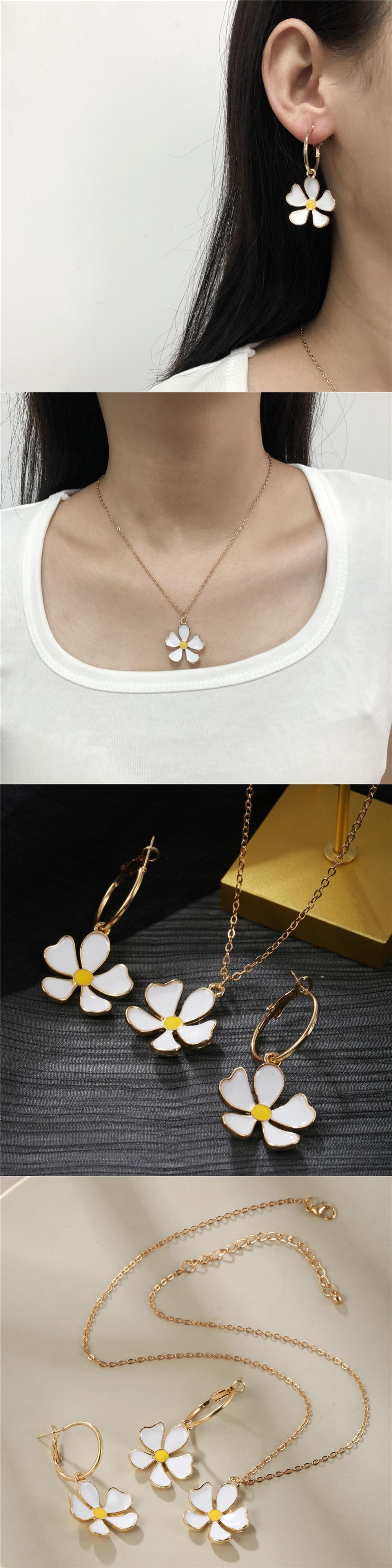 送料無料 デイジーヒマワリペンダントネックレスジュエリー女性エナメルフラワーチョーカー鎖骨チェーンガールズパーティーギフト レース フラワーデザイン アクセサリー AE7778853620575753