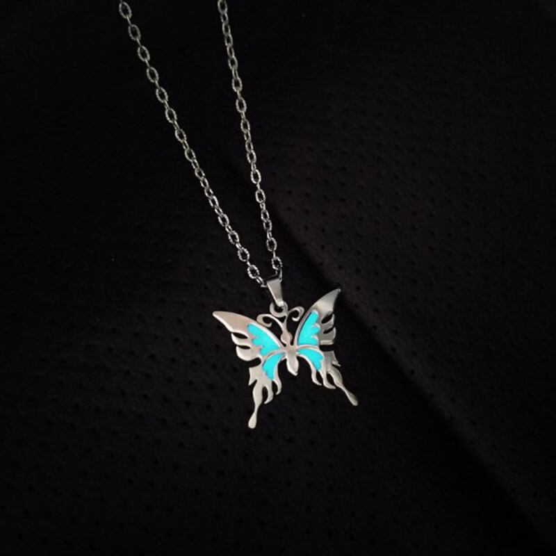 送料無料 ダークネックレスで輝くトレンディなバタフライクロスハート女性馬ムーンペンダントルミナスチョーカーチェーンジュエリーギフト男性 レース アクセサリー AE7778887969250991