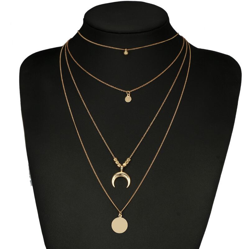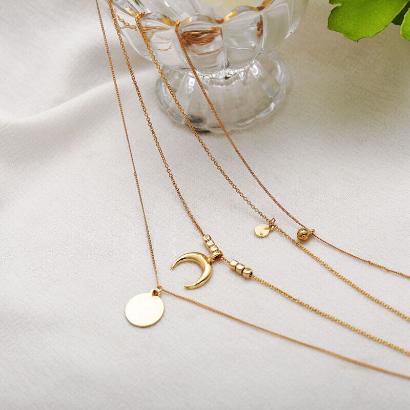 送料無料 自由奔放に生きる女性マルチレイムーンラウンドペンダントチョーカーネックレスガールゴールドカラーチェーンジュエリーサマーネックアクセサリートレンドギフト レース 夏物 アクセサリー AE7778812312931142