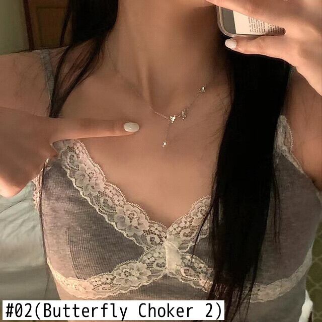 送料無料 バタフライクラビクルチェーンレディースネックレスチョーカーペンダントフラワーボウノットTelウェディングブライダルジュエリーギフト リボン レース フラワーデザイン アクセサリー AE7778820545747042