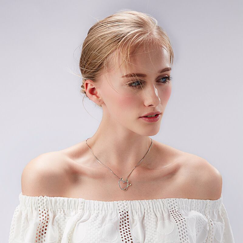 送料無料 中空デビルテールラブハートペンダントネックレス女性シルバーカラーラインストーンパーティーガールズチョーカーチャームギフトジュエリー レース 銀 アクセサリー AE7778837326188130