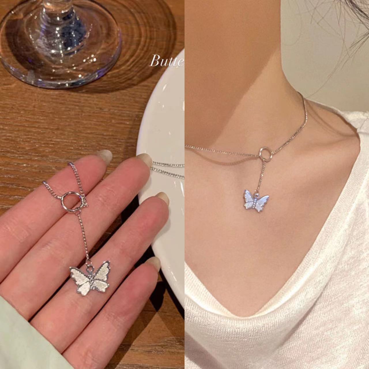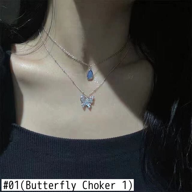 送料無料 シルバーカラーバタフライジルコンネックレスレディースウォーターボウノットローズペンダントチョーカージュエリーウェディングギフト2022 リボン レース 銀 アクセサリー AE7778841304614965