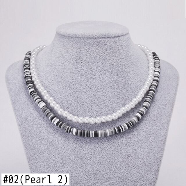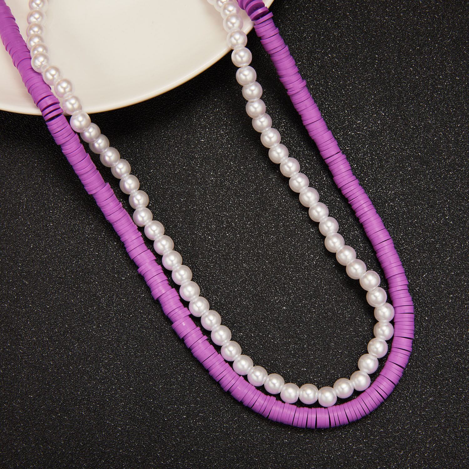 送料無料 シンプルな自由奔放に生きるジュエリーソフト陶器パールビーズチェーンチョーカー女性ネックレスカラフルなショートカラー2PCS/セットサマーギフト レース 夏物 真珠 アクセサリー AE7778888041798315
