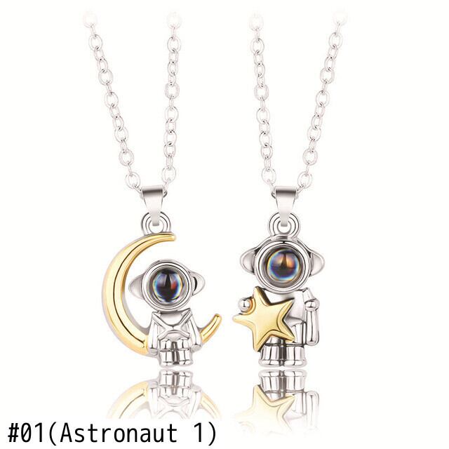 送料無料 100言語ILoveYouプロジェクションカップルネックレスセット女性ハートムーン宇宙飛行士ペンダントバレンタインデーギフトチェーンジュエリー レース アクセサリー AE7778897262581804