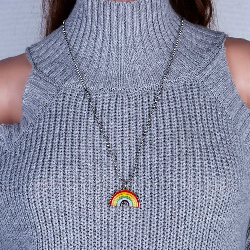 送料無料 かわいいエナメルレインボーセーターチェーン女性ネックレスロングペンダントレディパーティーコートアクセサリーガールズジュエリーギフト レース 大人ガーリー スウィート キュート カジュアル アクセサリー AE7778883400475470