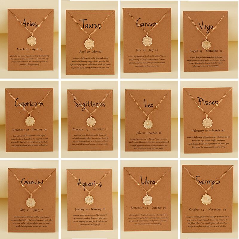 送料無料 可憐なチャームネックレススターゾディアックサイン12星座ペンダントネックレス女性女の子ゴールドチェーンチョーカー段ボールジュエリー レース アクセサリー AE777885554430846