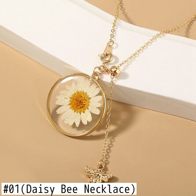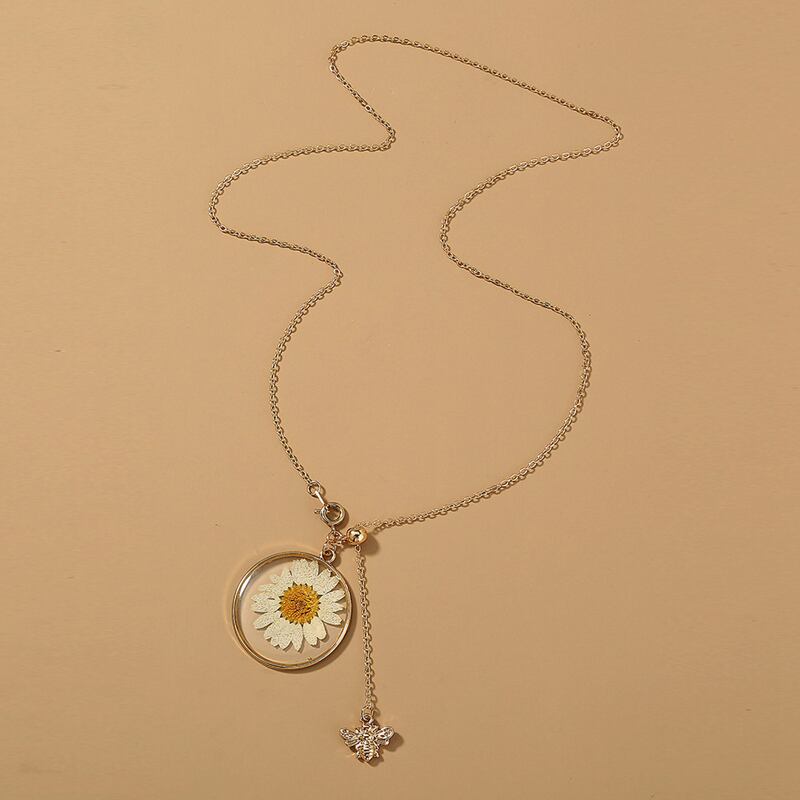 送料無料 ヴィンテージドライフラワーデイジービーロケットペンダントネックレス女性チョーカー菊ゴールドカラーロングチェーンジュエリーギフト レース フラワーデザイン ビンテージ アクセサリー AE7778820096987639