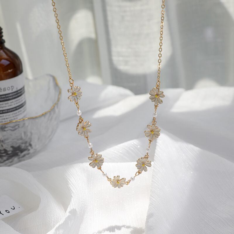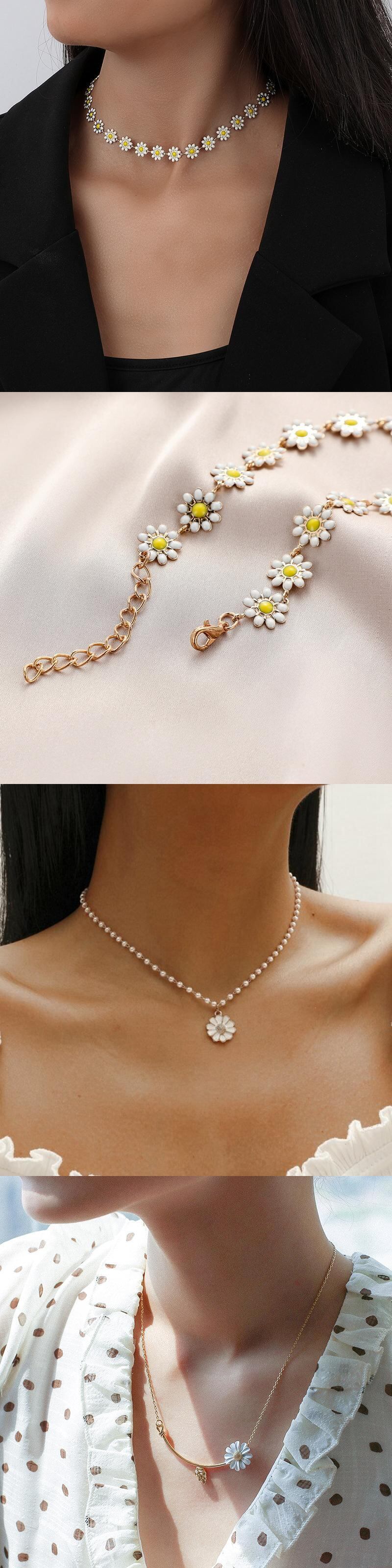 送料無料 花デイジーネックレス女性チョーカーパールウェディングパーティーガールズジュエリーショートチェーンペンダントスウィートギフトコリアー レース 大人ガーリー キュート カジュアル 真珠 フラワーデザイン アクセサリー AE7778872113134090
