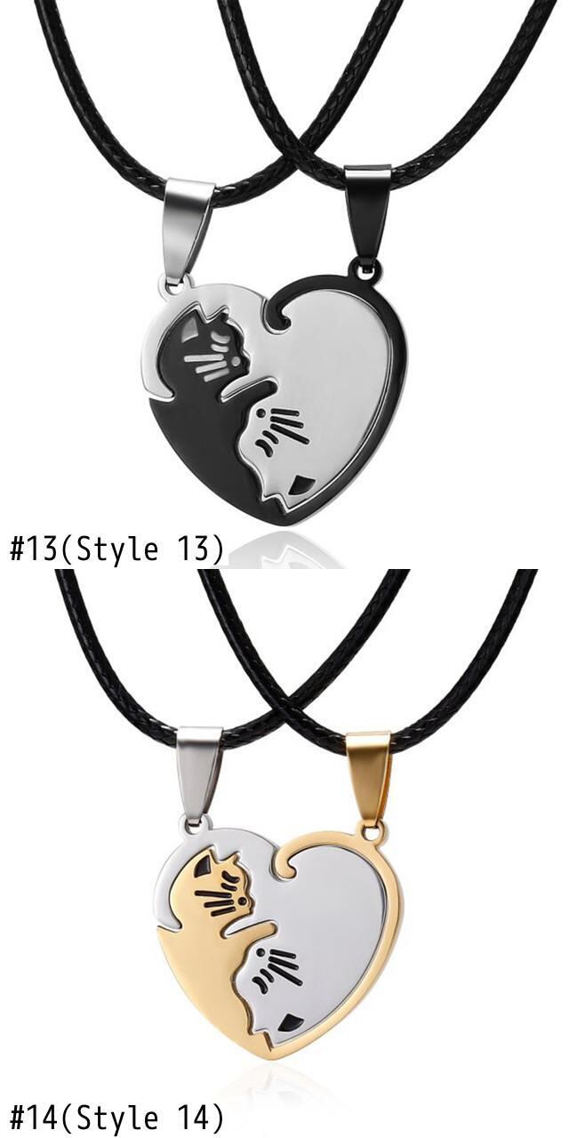 送料無料 チャームステンレス鋼ペット猫犬ペンダントネックレス女性カップルバレンタインデーギフトチェーンチョーカースプライシングジュエリー1ペア レース アクセサリー AE7778816688788971