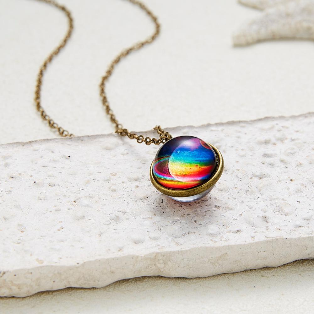 送料無料 ユニバースプラネットグローイングペンダントネックレス女性ヴィンテージルミナスギャラクシー星雲両面Glグローインザダークジュエリーギフト レース ビンテージ アクセサリー AE7778856142352847
