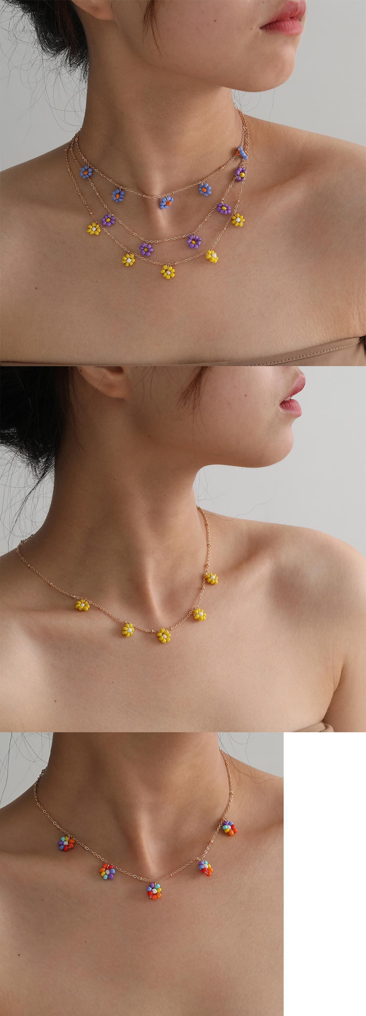 送料無料 マルチカラーライスビーズフラワーネックレス女性チョーカージュエリーサマービーチパーティーメタルアクセサリーネックチェーンガールギフト レース 夏物 フラワーデザイン アクセサリー AE7778848982371595