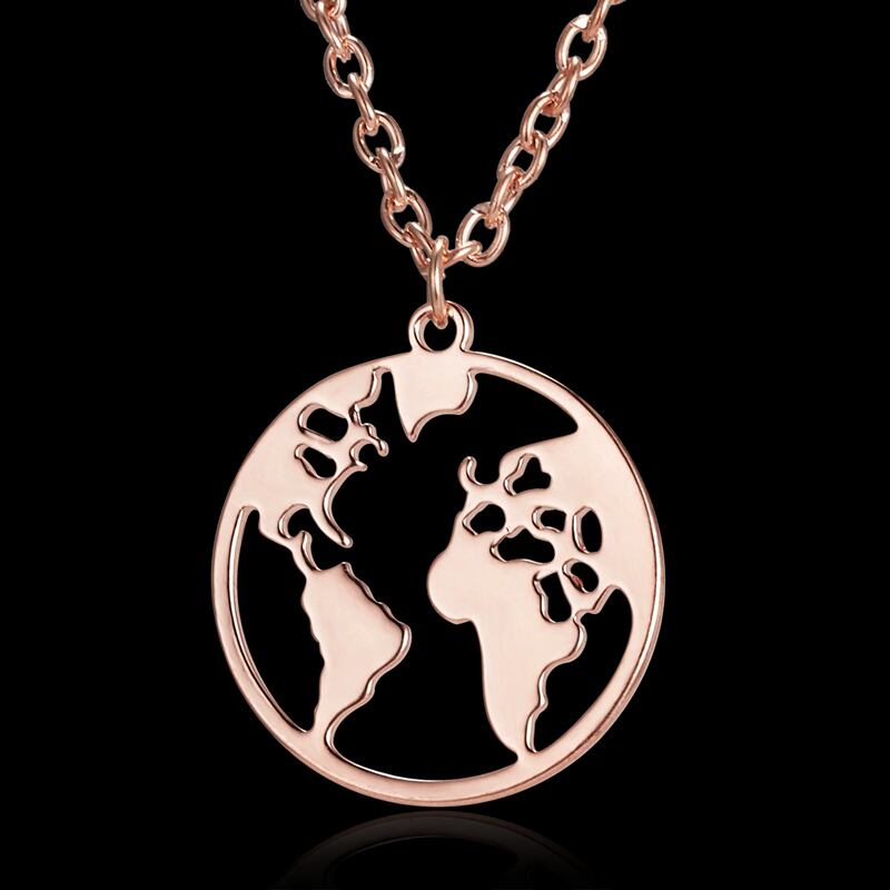 送料無料 トレンディな中空世界地図ネックレス女性シルバーカラーチェーンアースグローバルパターンペンダントガールズパーティージュエリーギフトチョーカー レース 銀 アクセサリー AE7778867993106853