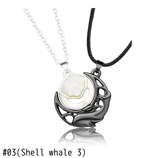 送料無料 2PCS/セットバレンタインデーマグネティックペアネックレス女性カップルペンダントチョーカーチェーンハートサンシェルジュエリーギフト レッド レース アクセサリー AE7778852153207320