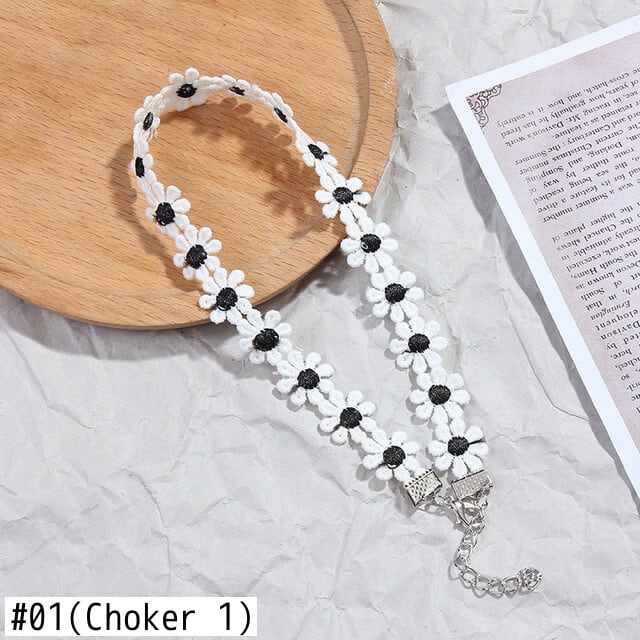 送料無料 カラフルなフラワーデイジーリーフネックレス女性チョーカーヴィンテージチャームチェーンアクセサリーガールフレンドステートメントジュエリーギフト レース フラワーデザイン ビンテージ アクセサリー AE7778825609060085