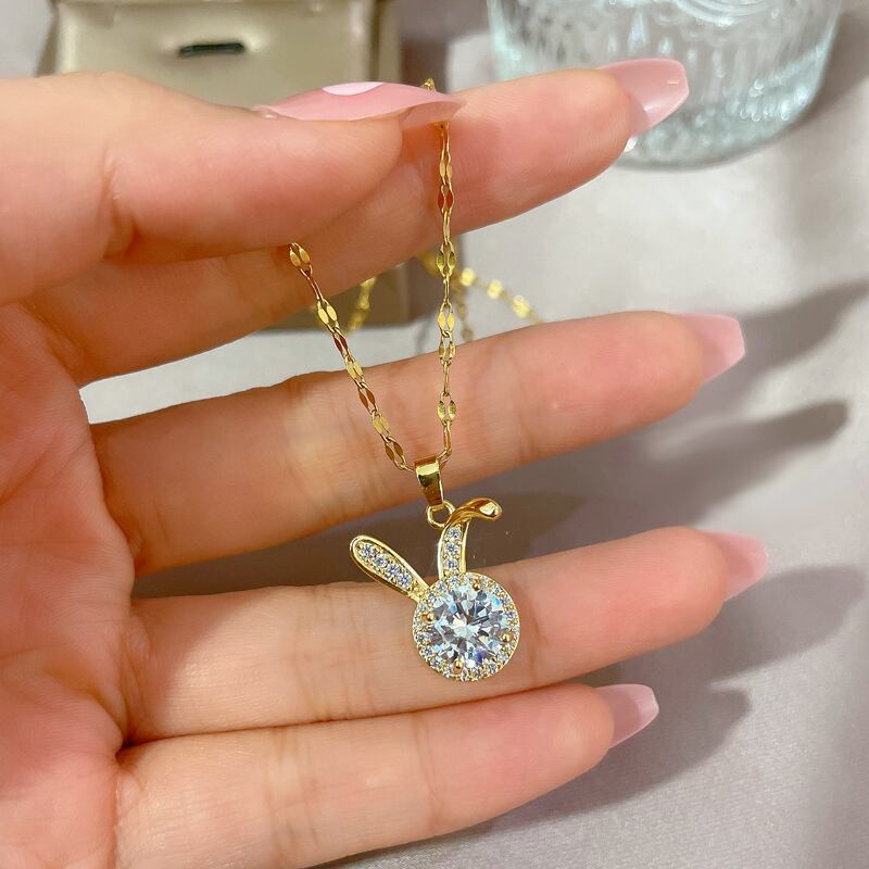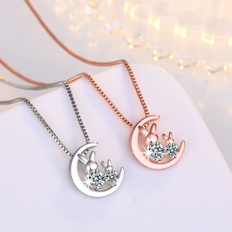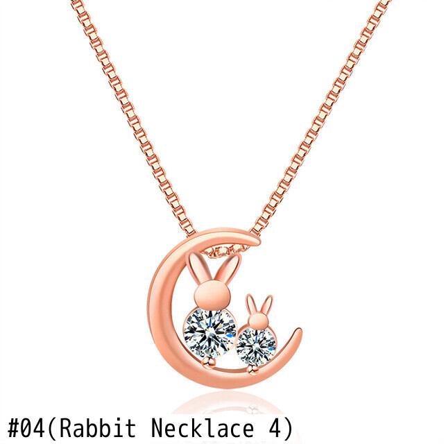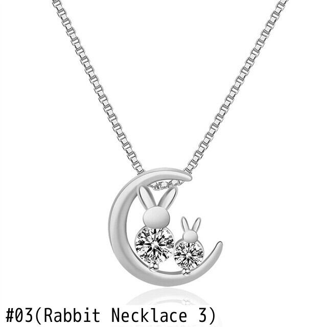 送料無料 ウサギムーンペンダントネックレス女性チョーカージュエリーラインストーンアニマルネックチェーンウェディングパーティーギフトカラー レース アクセサリー AE7778846929503050