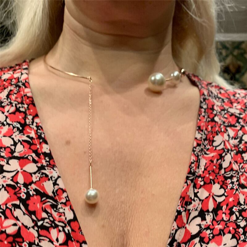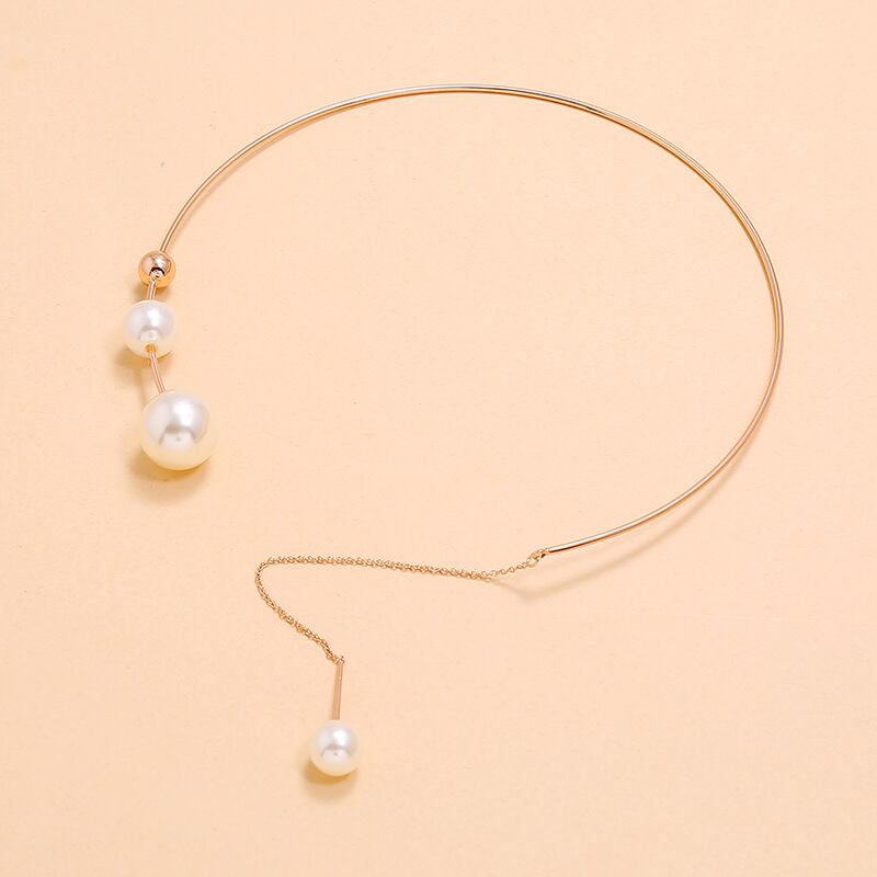送料無料 イミテーションパールチョーカーネックレス女性ビッグペンダントテル鎖骨チェーンウェディングジュエリーガールズギフト レース 真珠 アクセサリー AE7778881639046266