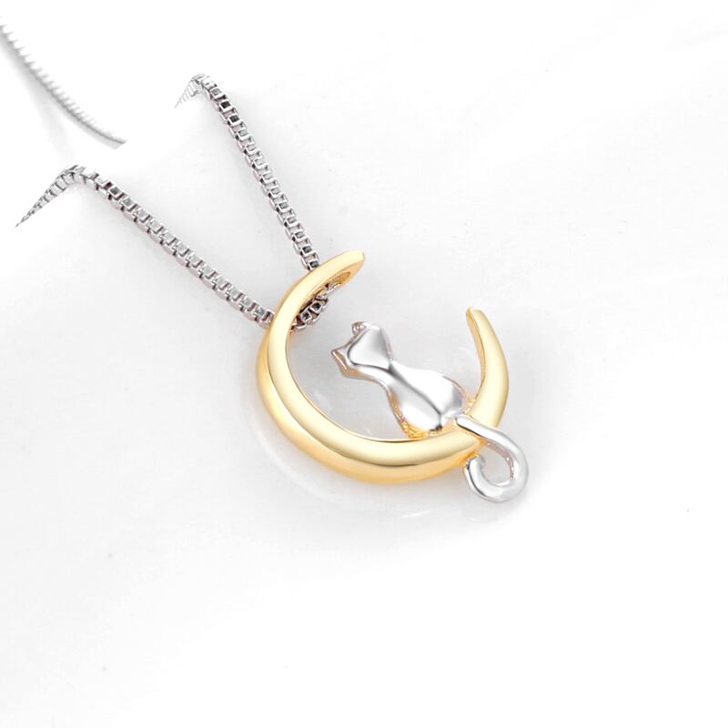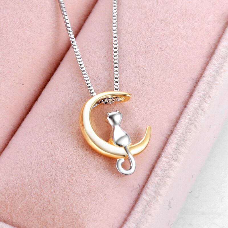 送料無料 美しいかわいい小さな猫の月のペンダントネックレス女性シルバーカラーチェーンチャーム最高の友情の贈り物ジュエリーチョーカーコリアー レース 大人ガーリー スウィート キュート カジュアル 銀 アクセサリー AE7778898641566466