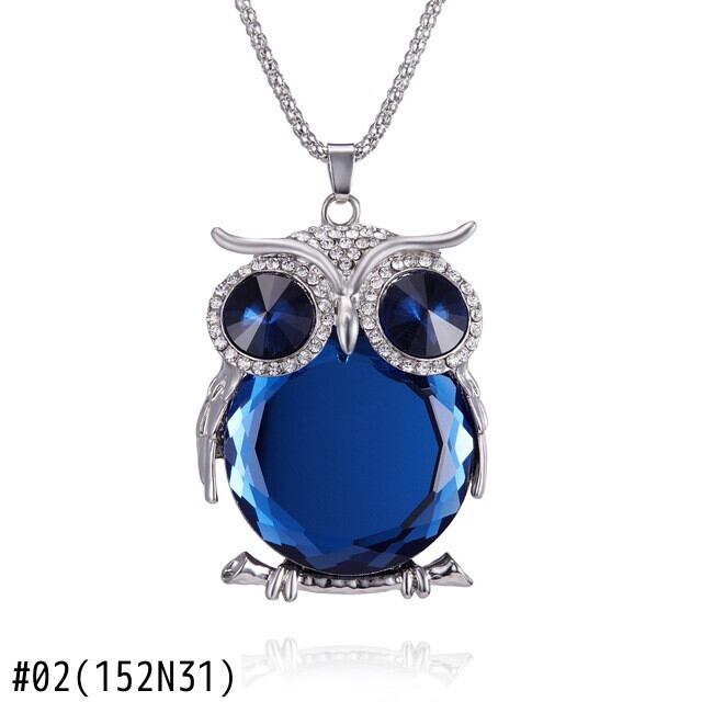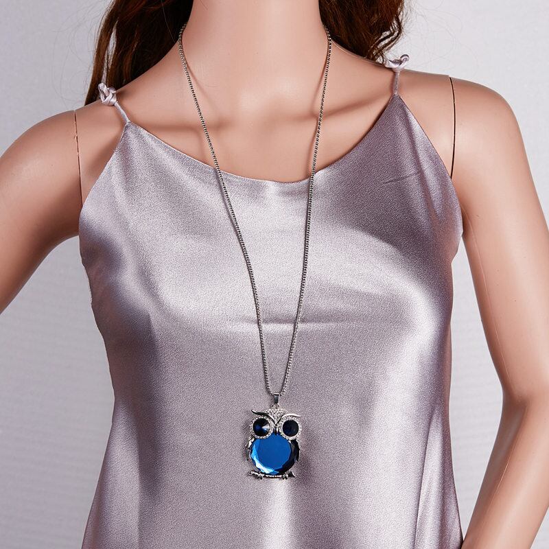 送料無料 かわいいオパールフクロウペンダントネックレス女性ブラックブルーロングチェーンコートアクセサリーセーターチェーンジュエリーギフト レース 大人ガーリー スウィート キュート カジュアル 蛋白石 アクセサリー AE7778879607834060