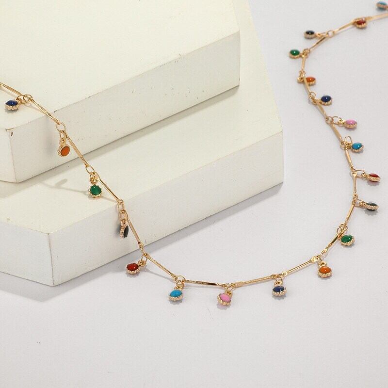 送料無料 自由奔放に生きるキャンディーカラーラウンドペンダント女性ネックレス甘いカラフルな鎖骨チェーン女の子チョーカーパーティーヴィンテージジュエリーギフト レース 大人ガーリー スウィート キュート カジュアル ビンテージ アクセサリー AE7778843344499408