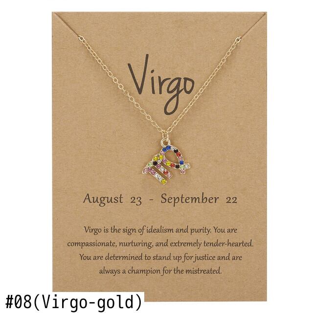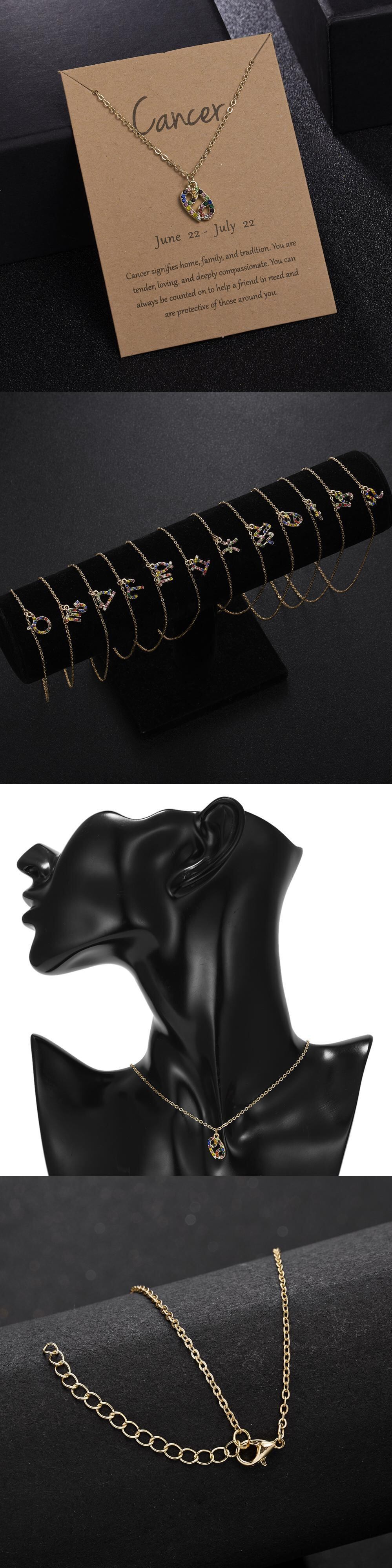 送料無料 チャーム12コンステレーションマルチカラークリスタルゾディアックペンダントレディースネックレスガールズバースデージュエリーゴールドカラー鎖骨チェーンカラー レース アクセサリー AE7778879720949683
