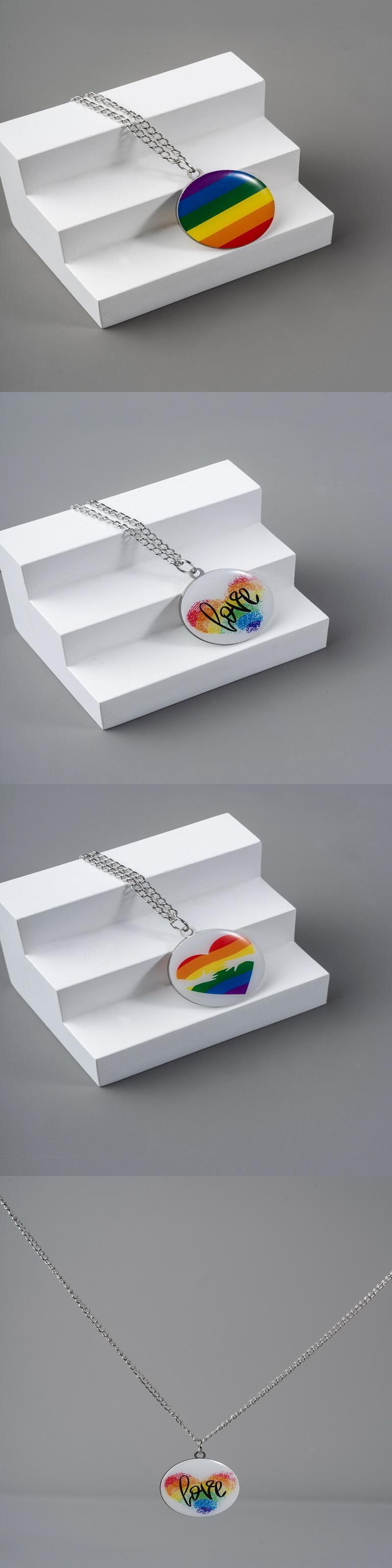 送料無料 ラウンドペンダントプライドLGBTネックレス女性カップルレインボーハートレターゲイチョーカーチェーンパーティージュエリーギフトアクセサリー レース アクセサリー AE7778811569413283
