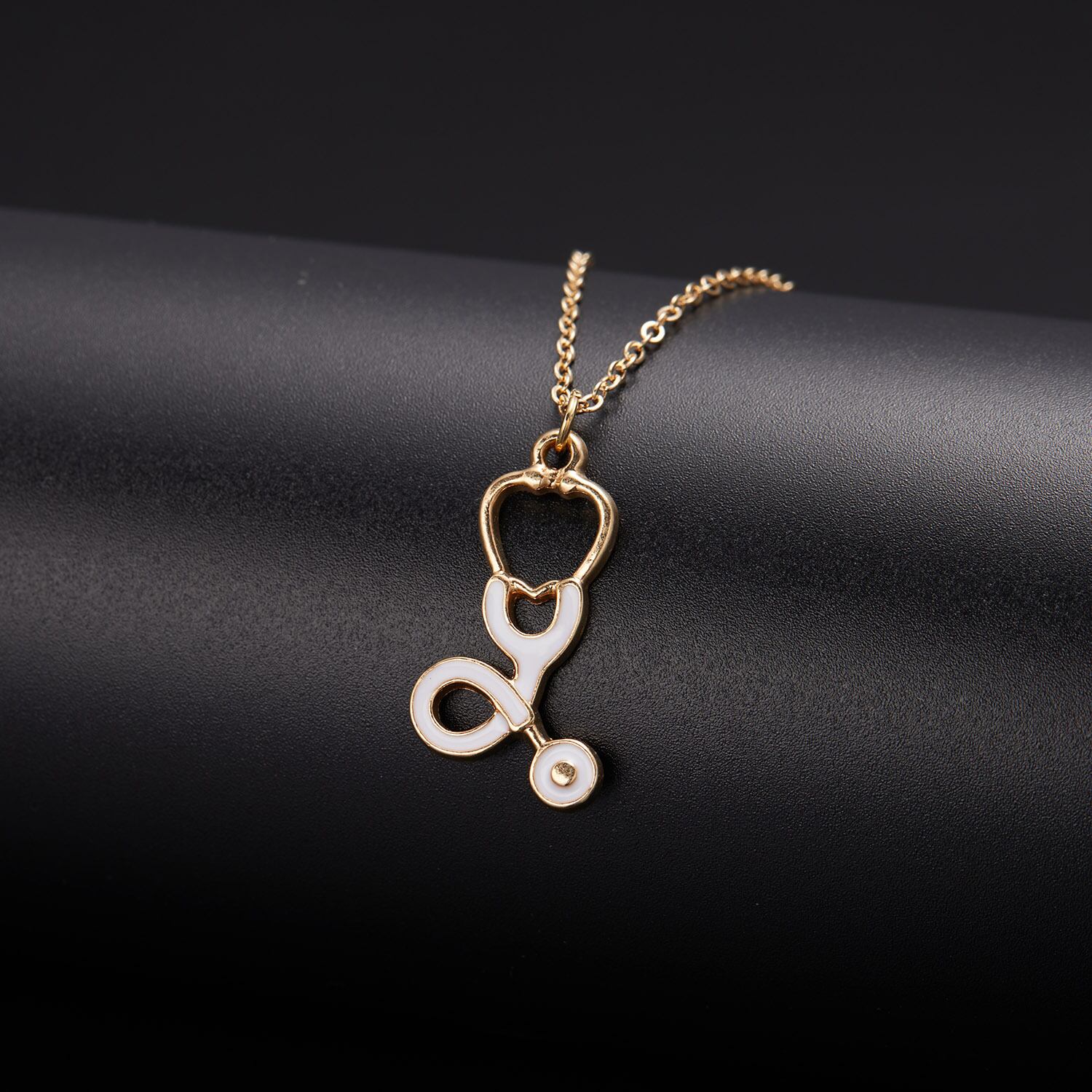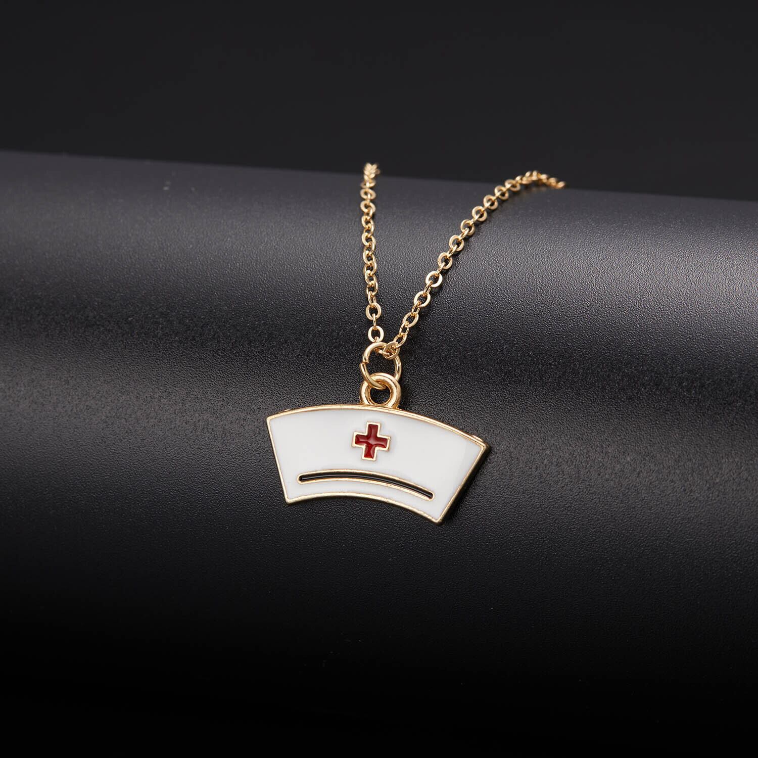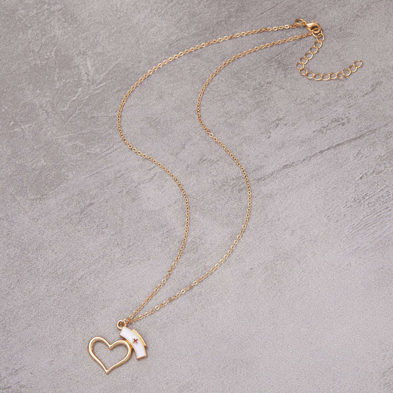 送料無料 聴診器ナースハットハートペンダントネックレス女性ドクターメディカルジュエリーチョーカーネックチェーンギフト レース 帽子 アクセサリー AE7778867404045385