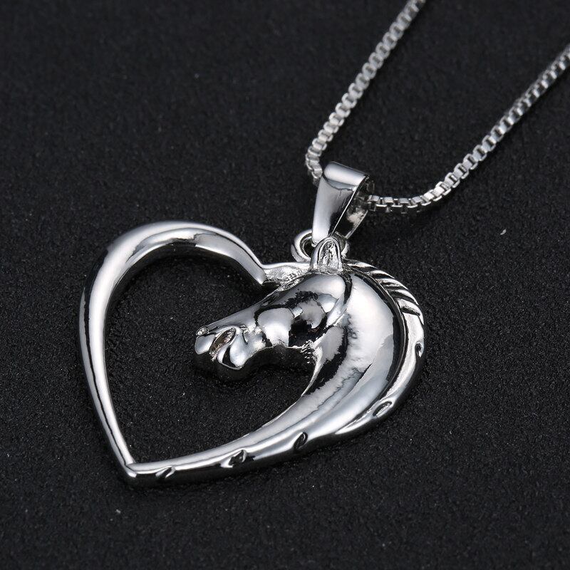 送料無料 ラッキーハートホースペンダントネックレス女性シルバーカラーチェーン中空動物チョーカーレディホリデージュエリーギフトスタイル レース 銀 アクセサリー AE7778828329985347