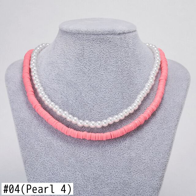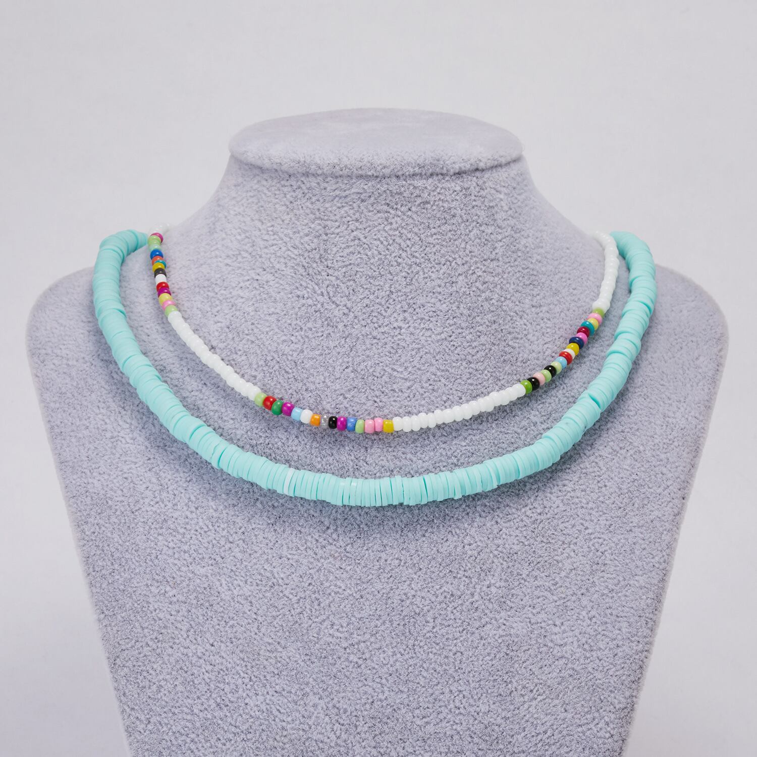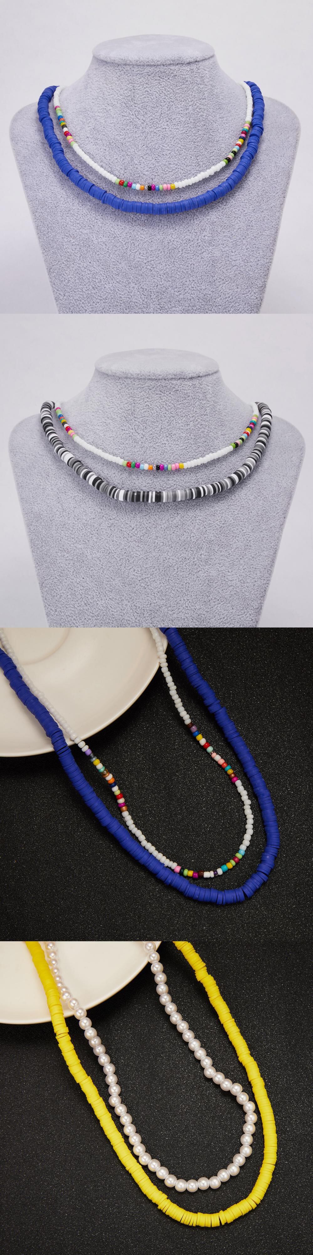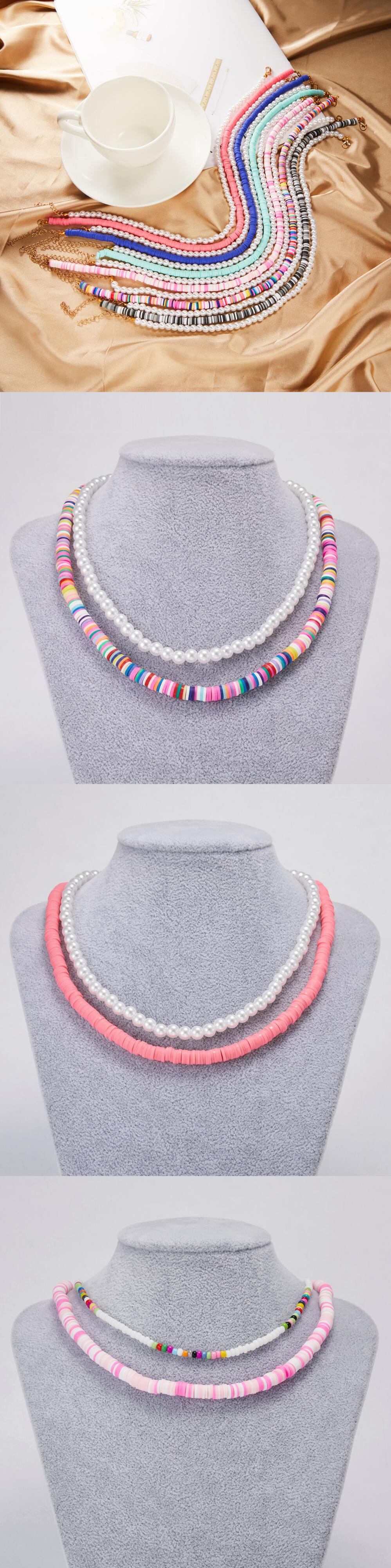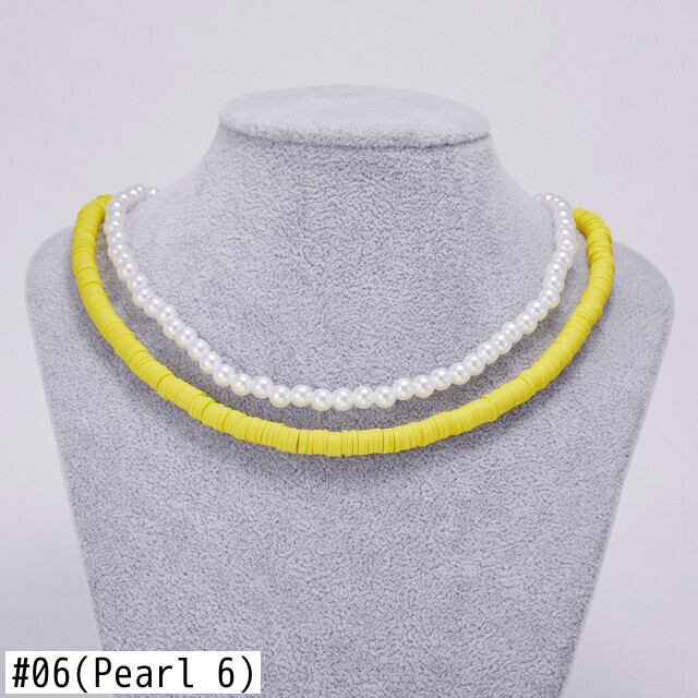 送料無料 キャンディーカラーガールズライスビーズポリマークレイネックレスセット女性イミテーションパールチョーカークラビクルチェーンビーチジュエリー2021 レース 真珠 アクセサリー AE7778810782130201