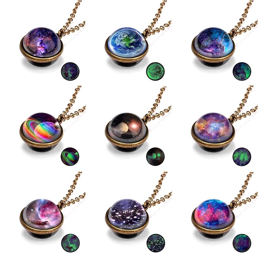 送料無料 両面Glボールルミナスプラネットアースネックレス女性男性ギャラクシーユニバースヴィンテージペンダントチェーン美的ジュエリーギフト レース ビンテージ アクセサリー AE7778893862411013