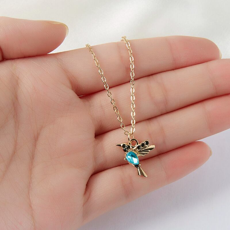 送料無料 ハミングバード女性ネックレスかわいい鳥ペンダントゴールドカラークラビクルチェーンチョーカーラインストーンガールズパーティージュエリーギフト レース 大人ガーリー スウィート キュート カジュアル アクセサリー AE7778873707916569