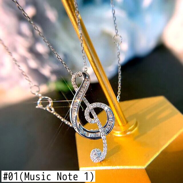 送料無料 ラグジュアリーウェディングジルコンペンダントネックレス女性ゴージャスミュージックノートチョーカーシルバーカラーチェーンパーティーエンゲージメントガールギフトカラー レース 銀 アクセサリー AE7778871649141990