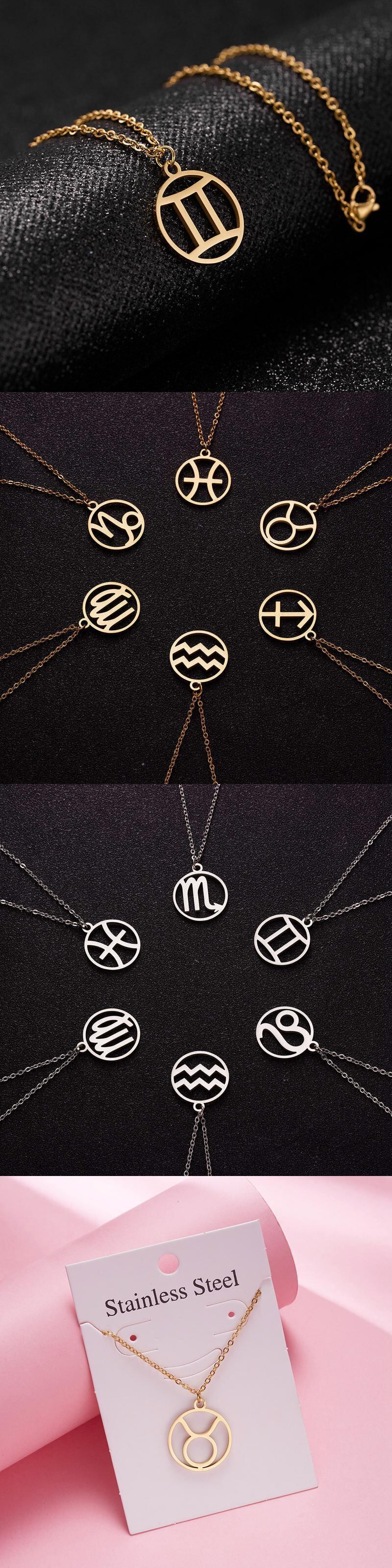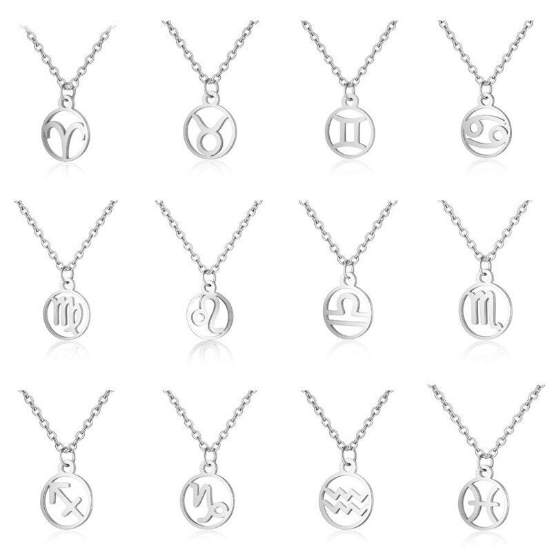 送料無料 薄い12星座ステンレス鋼ペンダントネックレス女性干支ネックチェーン誕生日ジュエリーギフトカップルカラー レース アクセサリー AE77788228695013